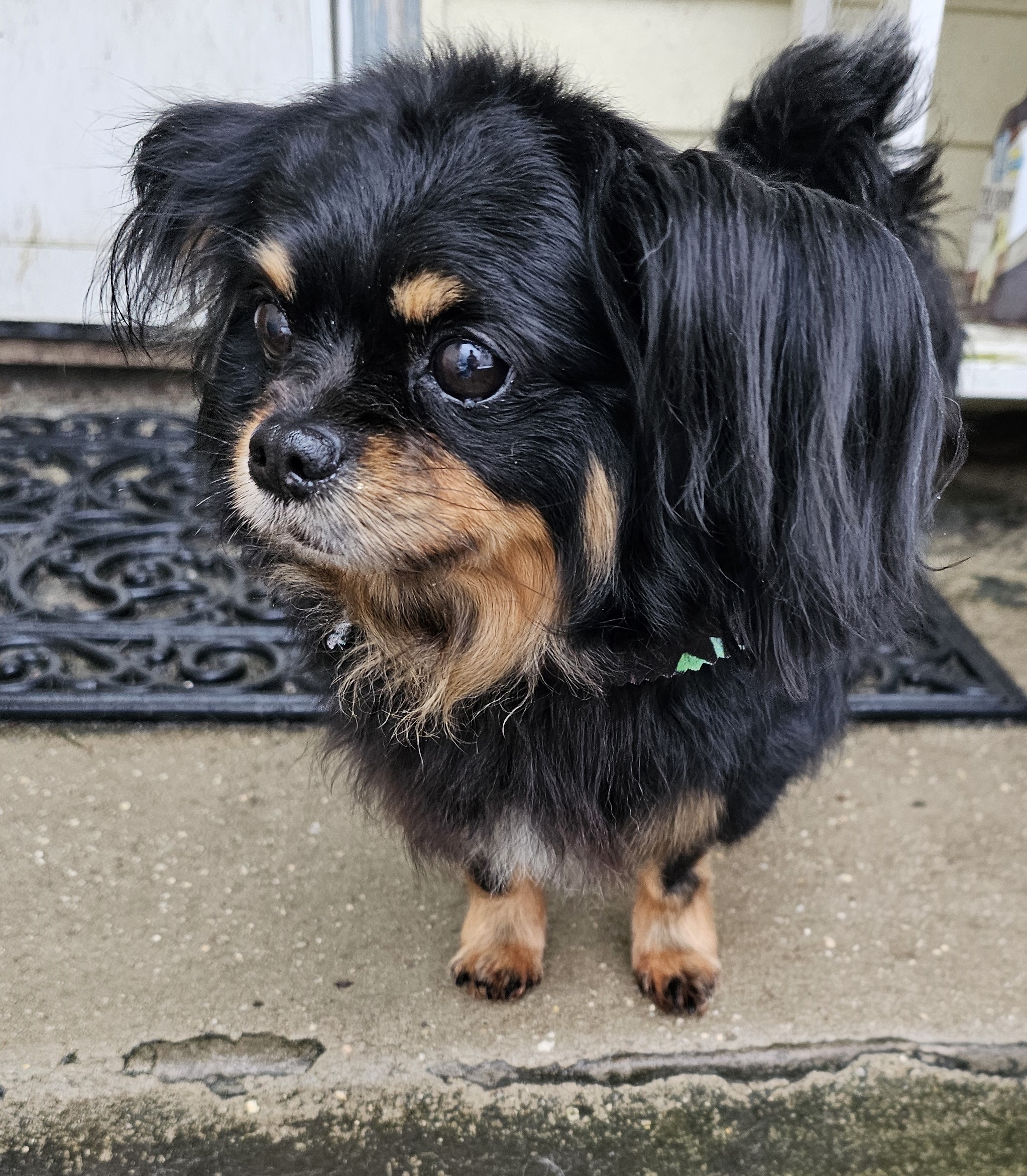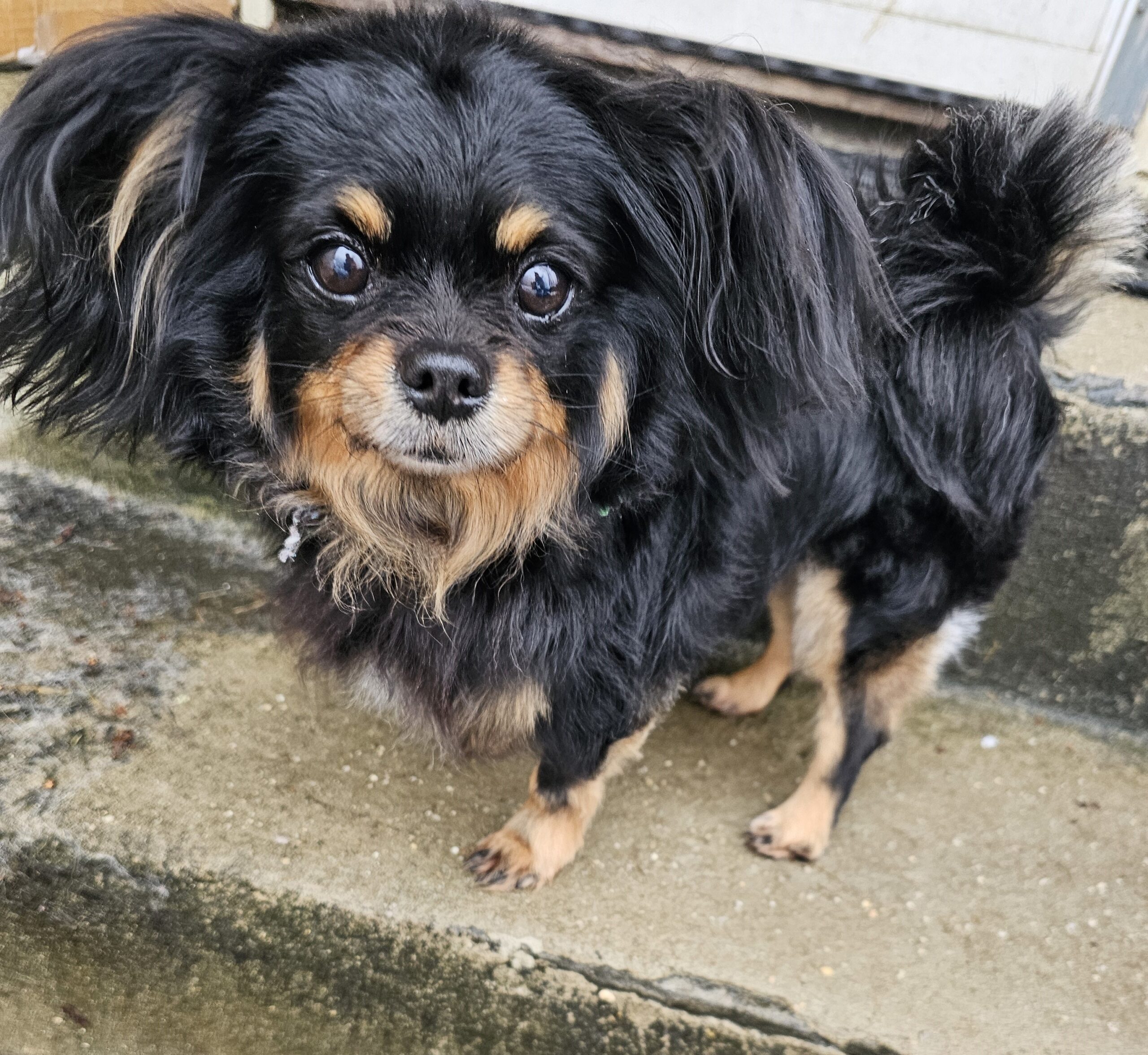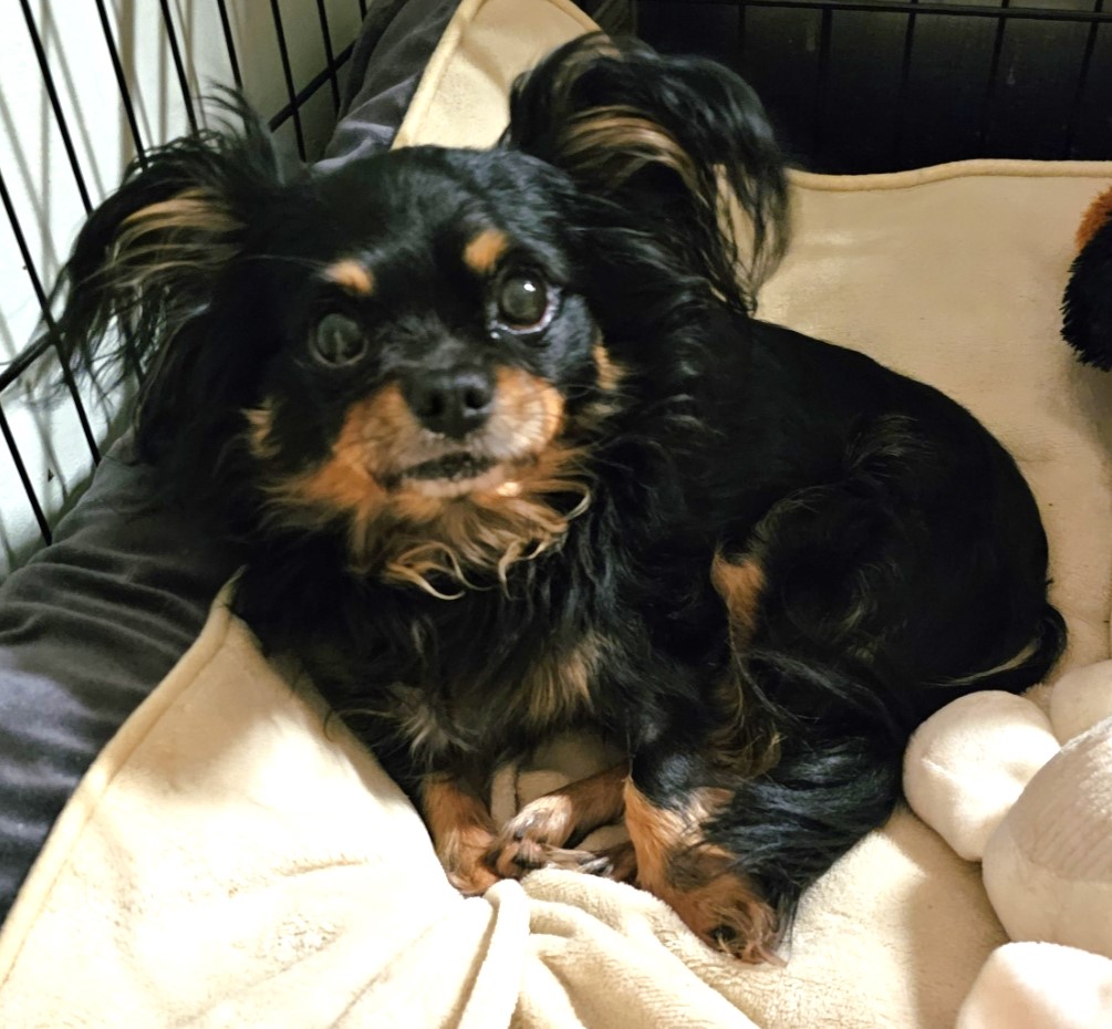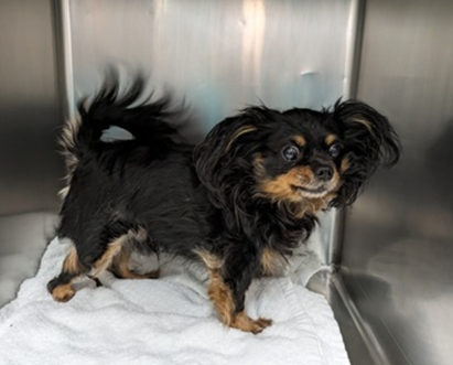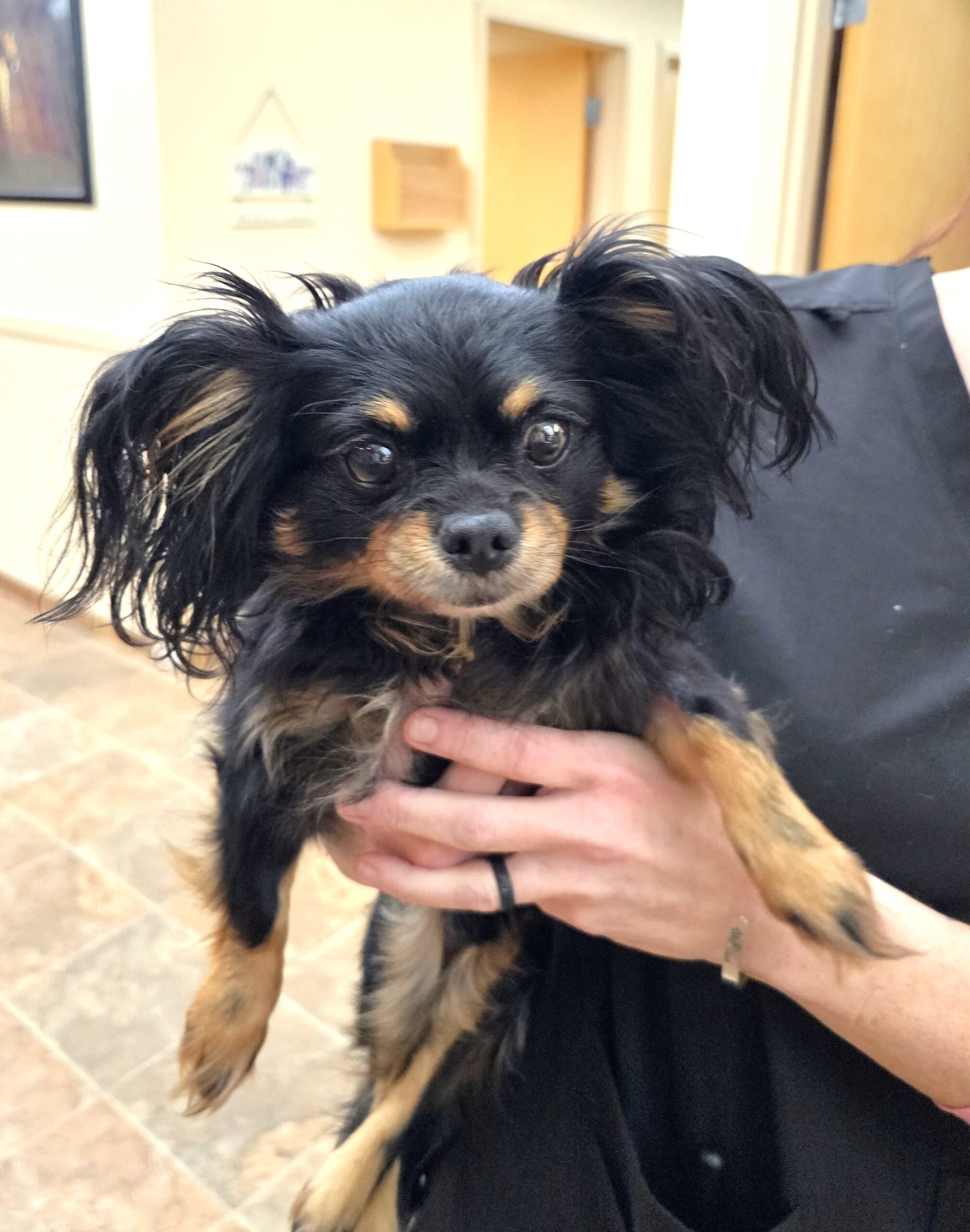 Franklin is a 5 year old, 9 lb. male black and tan Papillon-Chihuahua mix (best guess). This little guy is the sweetest little love bug. He is a Velcro dog that LOVES being with his people. He is a great little companion and enjoys mild walks, sniffing in the yard, lounging around, and giving kisses. Mostly, he just wants to be glued to his people.